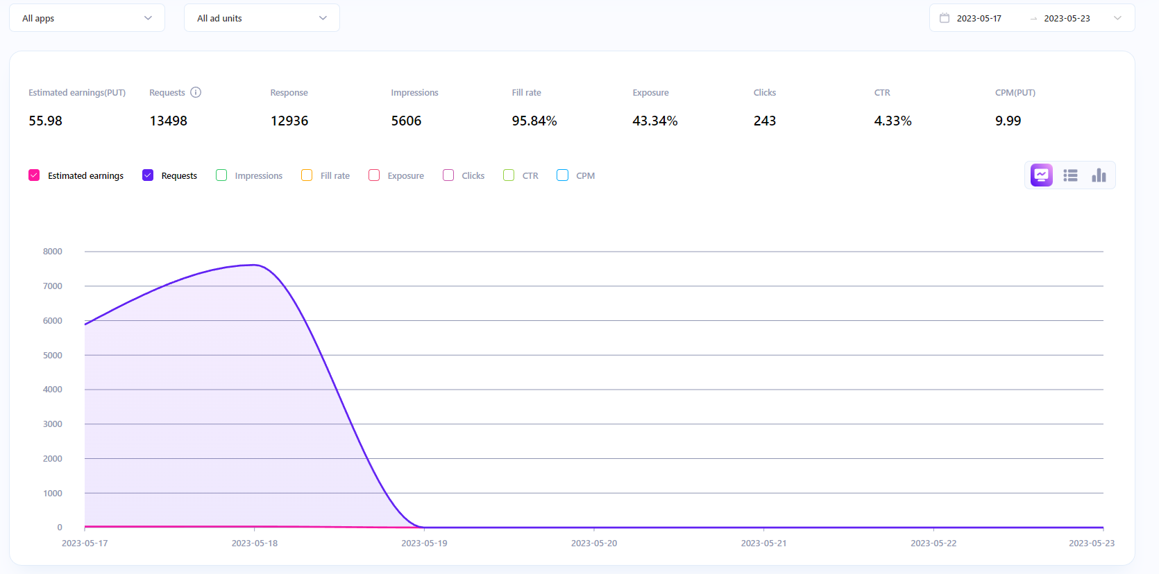 The website report is a report that collects statistics on advertising that is served on the Web, in which websites, ad units, and dates can be filtered. There are graphs and tables for data display.